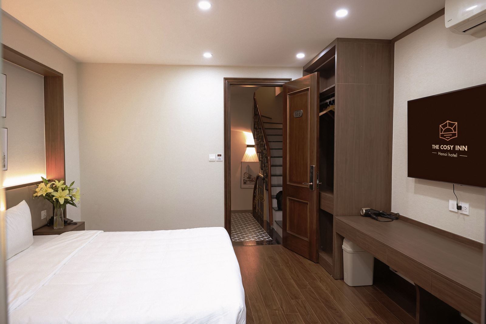 - Tủ đựng quần áo với các vật dụng cần thiết như: áo choàng tắm, đèn pin, bàn ủi,...
